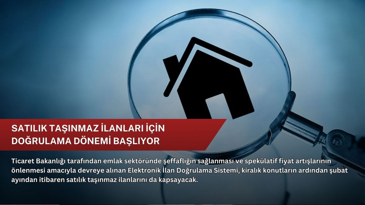Taylan, 1 Şubat itibarıyla satılık taşınmaz ilanları için de doğrulama sisteminin zorunlu hale getirileceğini belirterek, uygulamanın önce İzmir, Antalya ve Sivas'ta, 15 Şubat'tan itibaren de tüm Türkiye'de kullanılacağını söyledi.