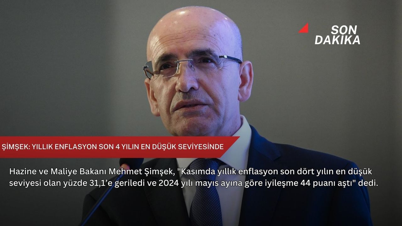 Yıllık enflasyonun kasımda son dört yılın en düşük seviyesi olan yüzde 31,1’e gerilediğini belirten Şimşek, "2024 yılı Mayıs ayına göre iyileşme 44 puanı aştı. Yıllık temel mal enflasyonu yüzde 19’un altına düştü." bilgisini paylaştı.