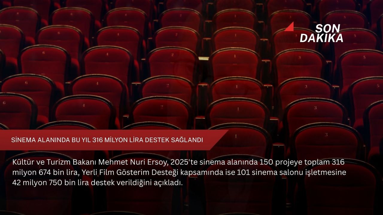 Bakan Ersoy, NSosyal hesabındaki paylaşımında, "Sinemada üretimi destekleyen, gösterim altyapısını güçlendiren bir yılı geride bıraktık. 2025 yılında Sinema Genel Müdürlüğümüz aracılığıyla sinema alanında toplam 150 projeye 316 milyon 674 bin lira destek sağladık. Yerli Film Gösterim Desteği kapsamında 101 sinema salonu işletmesine 42 milyon 750 bin lira destek verdik." ifadelerini kullandı.