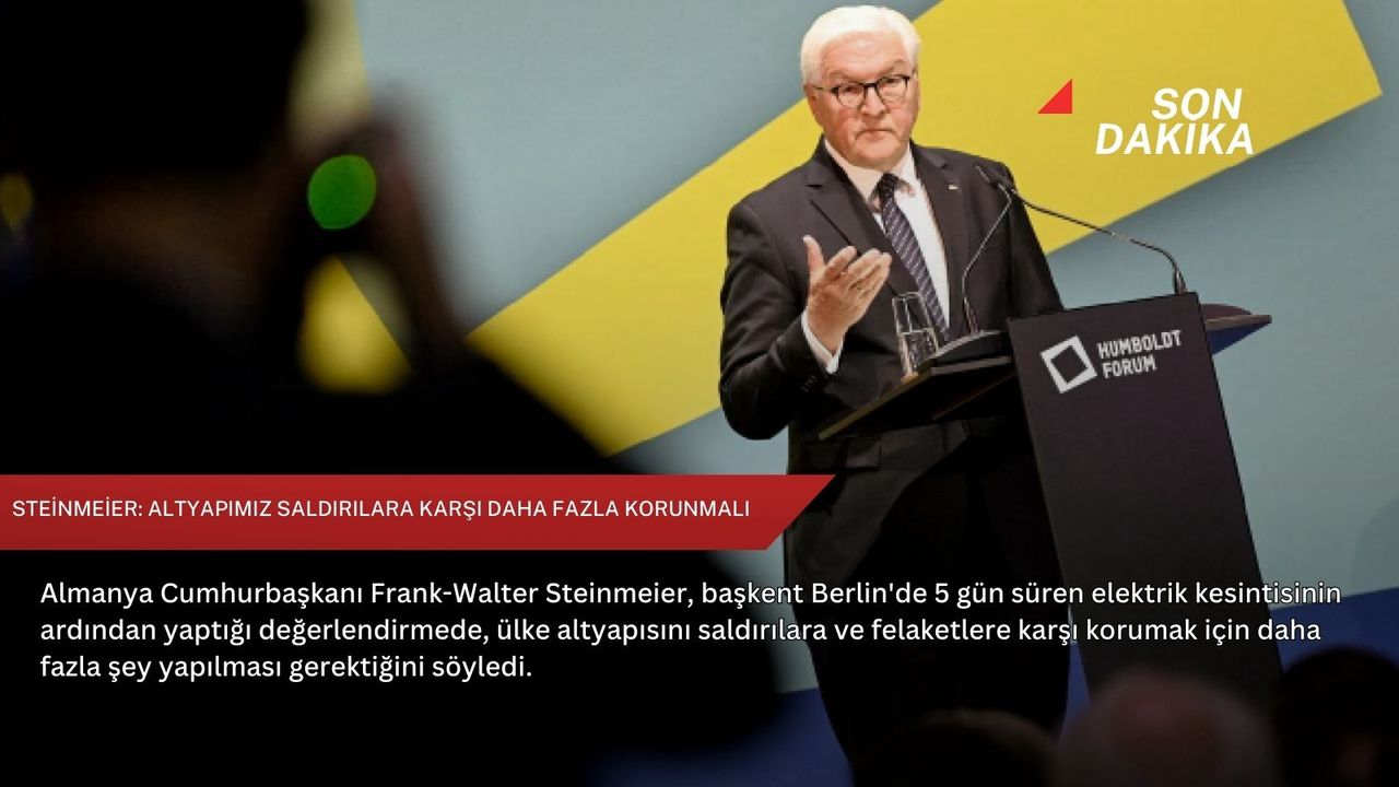 Steinmeier, burada yaptığı konuşmada, aşırı solcu Volkan Grubunun elektik kablolarına yaptığı saldırıya dikkati çekerek, "Almanya'da altyapımızı saldırılara ve felaketlere karşı korumak için daha fazla şey yapmalı ve genel olarak daha iyi hale gelmeliyiz." dedi.