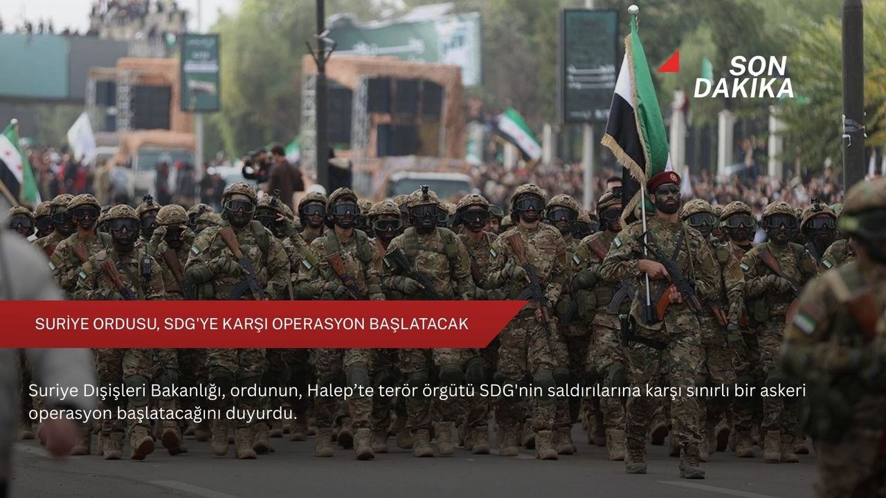 Suriye İletişim Bakanlığı, konuya ilişkin bir açıklama yayımladı. Açıklamada, Suriye Arap Ordusu'nun terör örgütü SDG'nin süregelen saldırılarına karşılık Halep'te sınırlı bir askeri operasyon başlatılacağı belirtildi.
