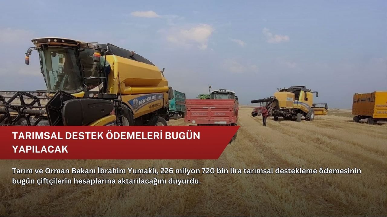 Üreticilerin emeğini koruyup, üretimin gücünü desteklerle büyütmeye devam ettiklerini belirten Yumaklı, "226 milyon lira tarımsal destek ödemesi, bugün çiftçilerimizin hesaplarına aktarılıyor. Hayırlı ve bereketli olsun." ifadesini kullandı.