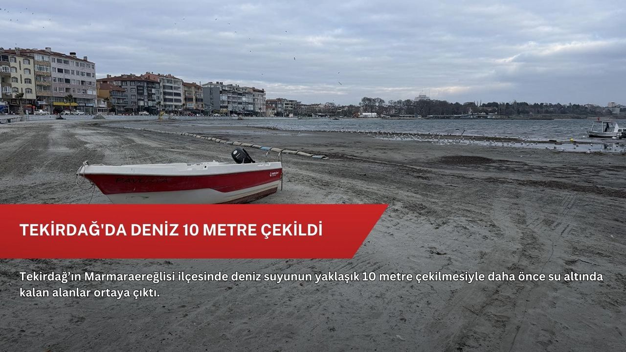Tekirdağ'ın Marmaraereğlisi ilçe merkezindeki sahilde deniz suyu 10 metre çekildi.