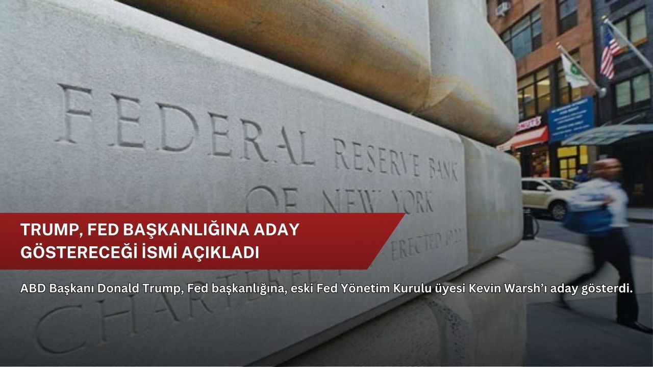 ABD Başkanı Trump, sosyal medya hesabından yaptığı paylaşımda, "Kevin Warsh'ı Fed Yönetim Kurulu Başkanı olarak aday gösterdiğimi duyurmaktan memnuniyet duyarım." ifadelerini kullandı.