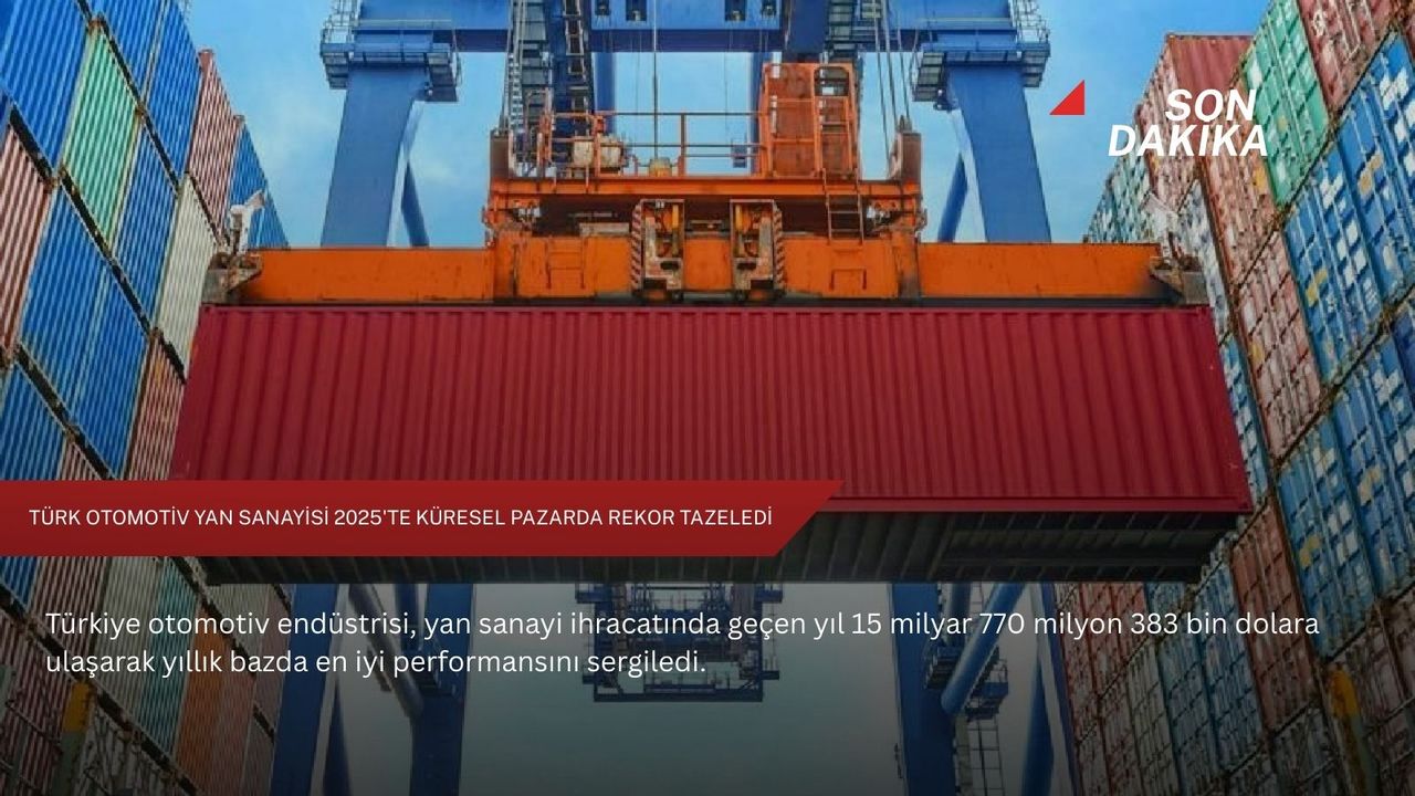 Önceki yıl 14 milyar 871 milyon 745 bin dolar olan otomotiv yan sanayi ihracatı, 2025'te yüzde 6 artışla 15 milyar 770 milyon 383 bin dolara çıktı. Böylece, yan sanayide yıllık bazda yeni bir rekor kırıldı.