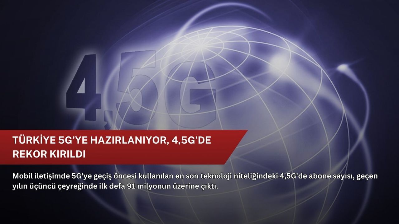 Bilgi Teknolojileri ve İletişim Kurumunun (BTK) geçen yılın üçüncü çeyreğine ilişkin "Türkiye Elektronik Haberleşme Sektörü Üç Aylık Pazar Verileri Raporu"na göre, 5G'ye geçiş öncesi kullanılan en son teknoloji niteliğindeki 4,5G'de ise kritik bir eşik daha geride bırakıldı.