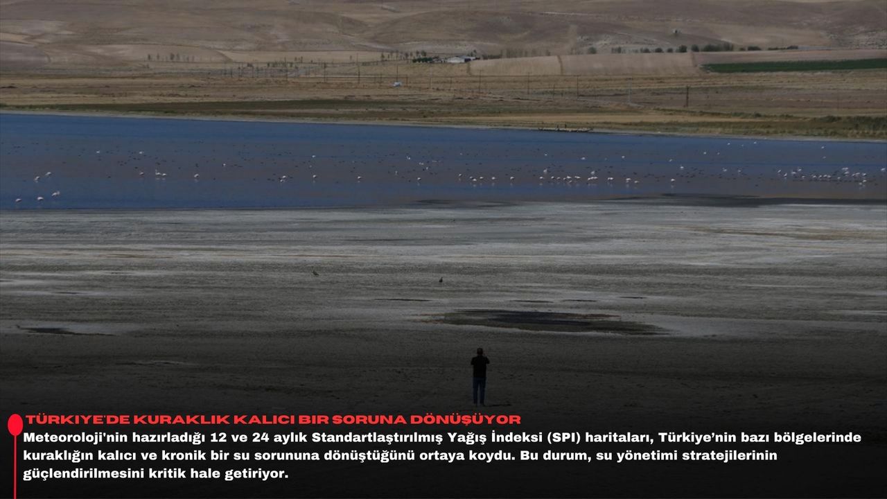 "12 aylık haritada kısa vadeli etkiler kalıcı bir yapıya dönüşüyor, İç Anadolu'nun büyük bölümüyle Ege ve Akdeniz'in önemli kısmında olağanüstü kuraklık sınıfı baskın hale geliyor. 24 aylık tabloda ise Türkiye'nin uzun süreli su baskısı netleşiyor. Ankara'nın batısından Eskişehir'e ve İç Ege'ye uzanan geniş kuşakta olağanüstü kuraklık çemberinin kalıcı hale geldiği, Güneydoğu Anadolu'da ise şiddetli kuraklığın kronikleştiği görülüyor."