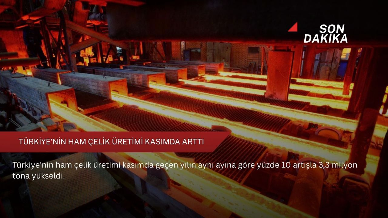 Buna göre, Türkiye'nin ham çelik üretimi, kasımda geçen yılın aynı ayına göre yüzde 10 artışla 3,3 milyon ton oldu. Ocak-kasım döneminde üretim yüzde 2 artışla 34,6 milyon ton seviyesinde gerçekleşti.