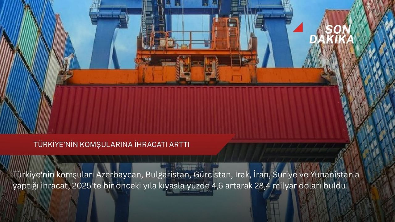 Türkiye, 2025'te komşuları Azerbaycan, Bulgaristan, Gürcistan, Irak, İran, Suriye ve Yunanistan'a 28 milyar 352 milyon 370 bin dolarlık ihracat yaptı.