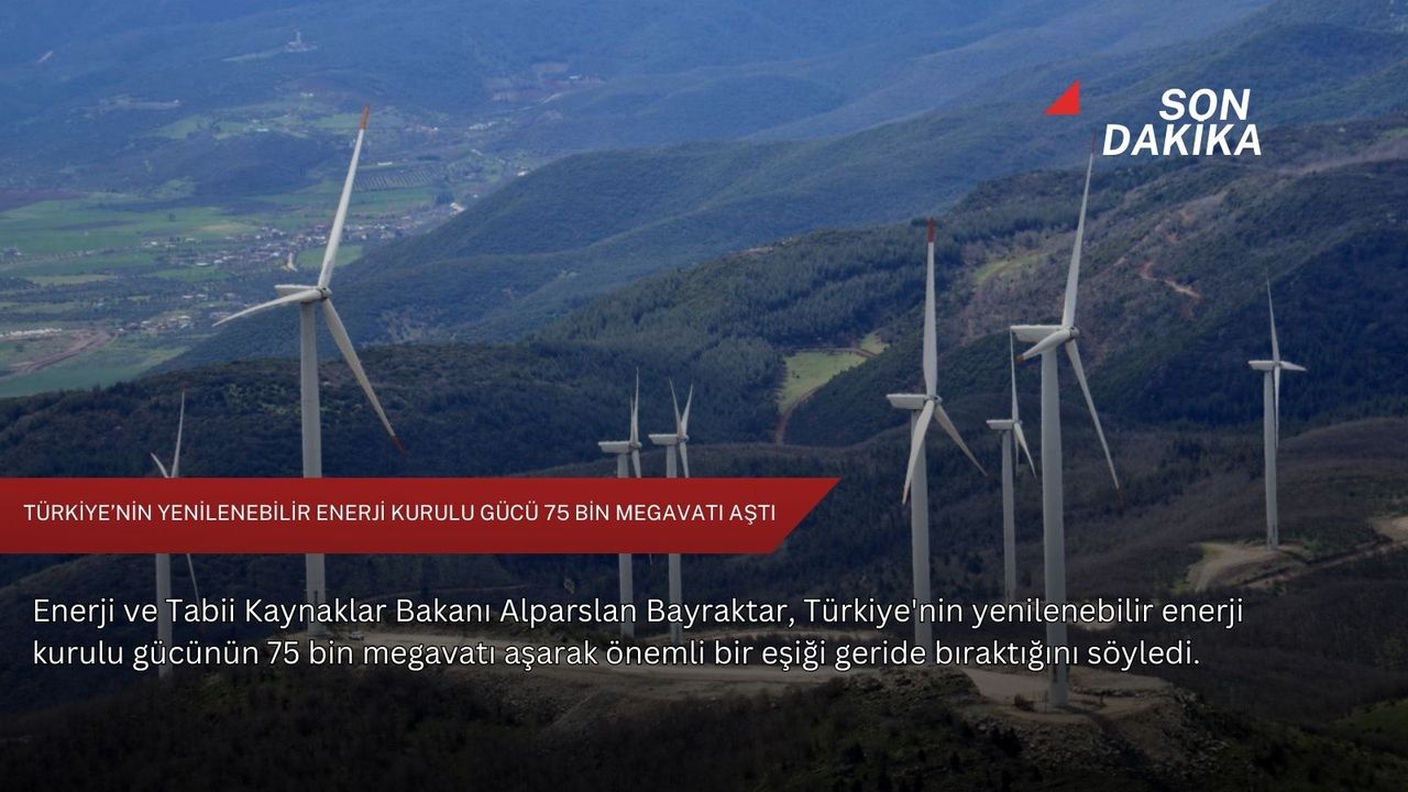 Açıklamada değerlendirmelerine yer verilen Bakan Bayraktar, yenilenebilir enerji kurulu gücünün 75 bin megavatı aşarak önemli bir aşamayı geride bıraktığına dikkati çekerek, rüzgar ve güneş kurulu gücü toplamının 39 bin 215 megavata çıktığını ifade etti.