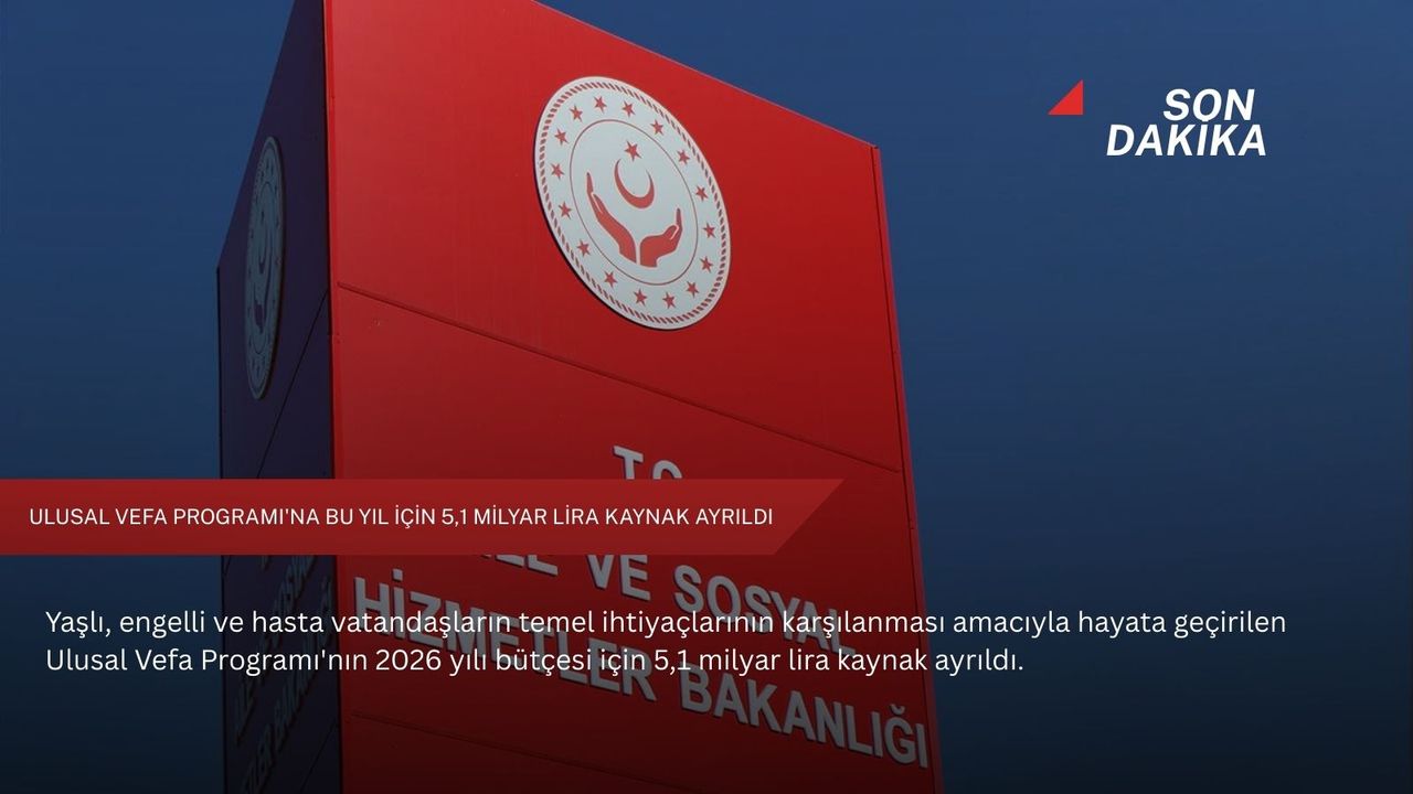 Yaşlı, engelli ve hasta vatandaşların temel ve zaruri ihtiyaçlarının karşılanması amacıyla hayata geçirilen Ulusal Vefa Programı'nın 2026 bütçesi için 5,1 milyar lira kaynak ayırdıklarını bildiren Bakan Göktaş, bu kaynağın ocak, şubat ve mart aylarını kapsayacak şekilde ilk çeyrek ödemesi olan 1,3 milyar lirayı sosyal yardımlaşma ve dayanışma vakıflarına aktardıklarını kaydetti.