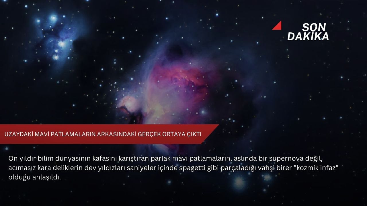 Gökbilimciler, on yıldır evrenin derinliklerinden gelen ve "mavi patlamalar" olarak bilinen gizemli ışık parlamalarının sırrını nihayet çözmeyi başardı. AT 2024wpp adı verilen yeni bir sinyal üzerinde yapılan incelemeler, bu göz kamaştırıcı mavi ışıkların basit bir yıldız patlaması (süpernova) olmadığını, aksine bir kara deliğin bir yıldızı sadece birkaç gün içinde adeta "kıyma makinesinden geçirerek" yok etmesinden kaynaklandığını ortaya koydu. Bilim dünyasında büyük heyecan yaratan bu keşif, uzayın en vahşi ve en parlak olaylarından birinin perde arkasını aydınlatıyor.