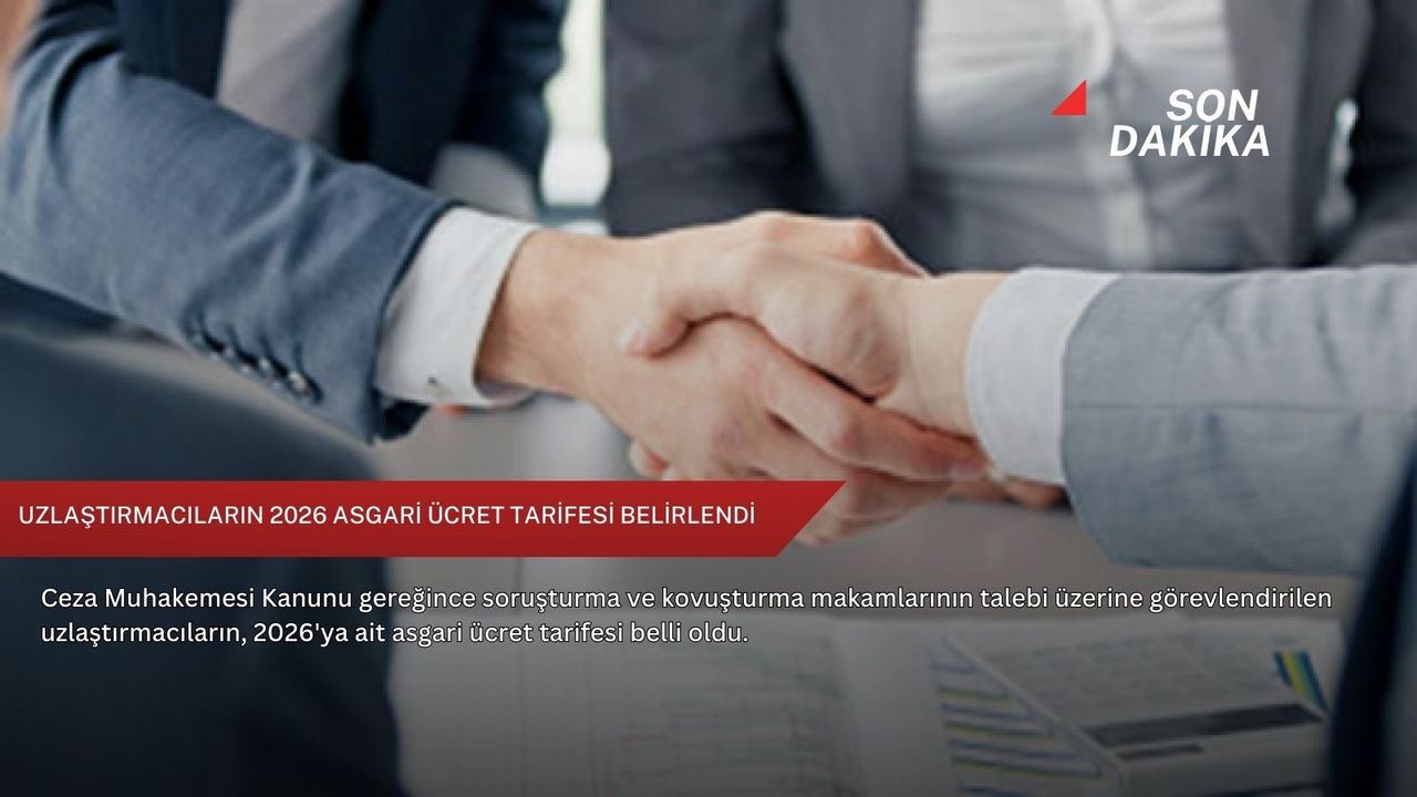 Adalet Bakanlığının "2026 Yılı Uzlaştırmacı Asgari Ücret Tarifesi" Resmi Gazete'de yayımlanarak yürürlüğe girdi.