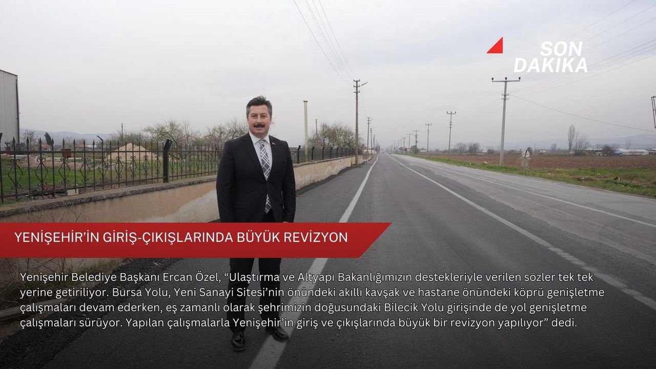 Başkan Ercan Özel, “Uzun yıllardır ilçenin ulaşım yükünü taşıyan Bursa Yolu Girişi’nde Ulaştırma ve Altyapı Bakanlığımızın da destekleriyle sıcak asfalt çalışmaları aralıksız devam ederken, bölgeye kazandırılan akıllı kavşak ile hastane önünde bulunan Yenişehir giriş köprüsündeki genişletme çalışmaları da eş zamanlı olarak yürütülüyor. Yaklaşık 50 yıl önce yapılan ve dar yapısı nedeniyle ciddi risk oluşturan köprü, gerçekleştirilen düzenlemelerle birlikte daha geniş ve güvenli hale getiriliyor. Şerit sayısının artırılmasıyla hem trafik akışı rahatlayacak hem de sürüş güvenliği üst seviyeye taşınacak” dedi.