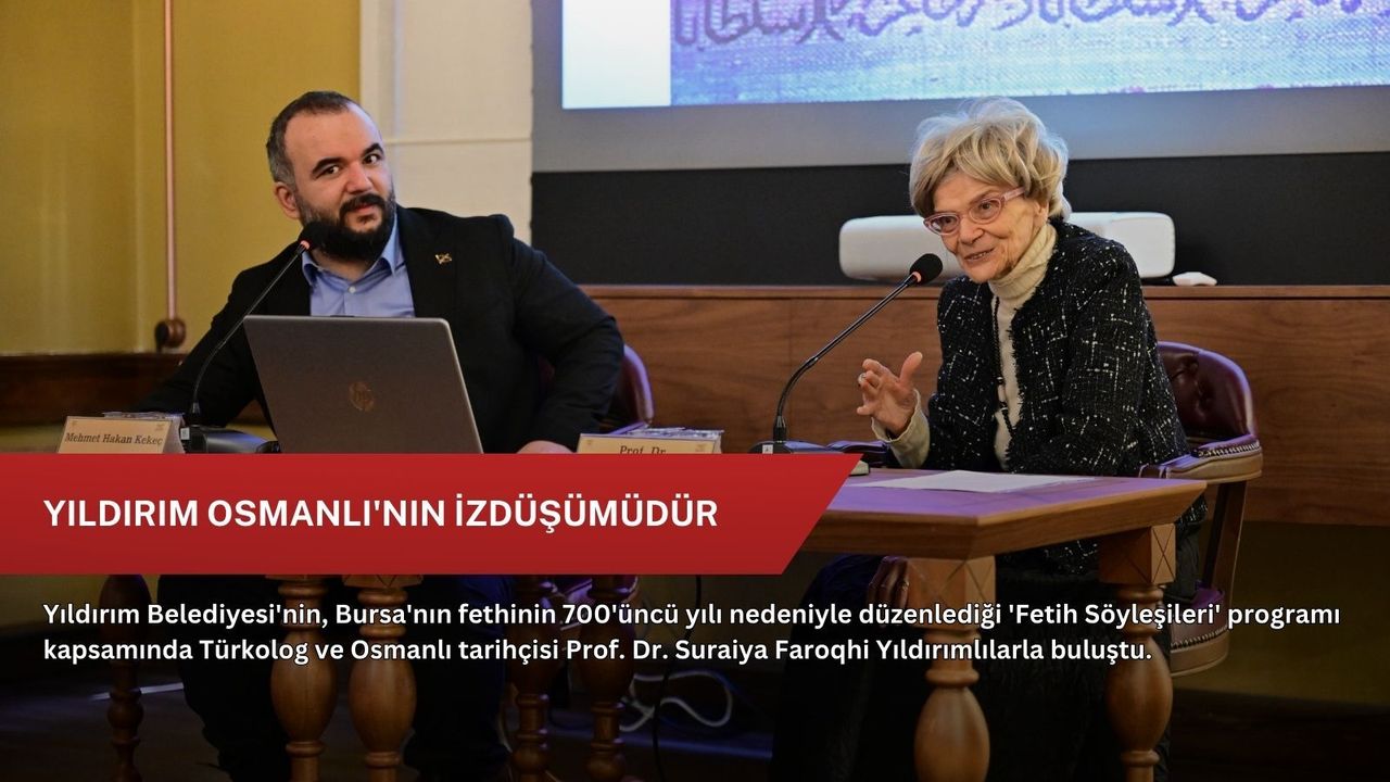 Yıldırım Belediyesi, ‘Beylikten Cihan Devleti’ne’ temasıyla başlattığı 2025-2026 Kültür Sanat Sezonu’nda, Bursa’nın fethini; tarihi, kültürel ve felsefi açıdan ele almaya devam ediyor. Bursa’nın fethinin 700’üncü yıl dönümü nedeniyle, Kültür Sanat ve Sosyal İşler Müdürlüğü tarafından düzenlenen ‘Bursa’nın Fethi’ söyleşileri devam ediyor. Alev Alatlı Şehir, Düşünce ve Sanat Merkezi’nde gerçekleştirilen söyleşilerin bu haftaki konuğu Türkolog, Osmanlı Tarihçisi ve İbn Haldun Üniversitesi Öğretim Üyesi Prof. Dr. Suraiya Faroqhi oldu. Yıldırım Belediye Başkanı Oktay Yılmaz’ın da takip ettiği programa Bursalılar yoğun ilgi gösterdi.