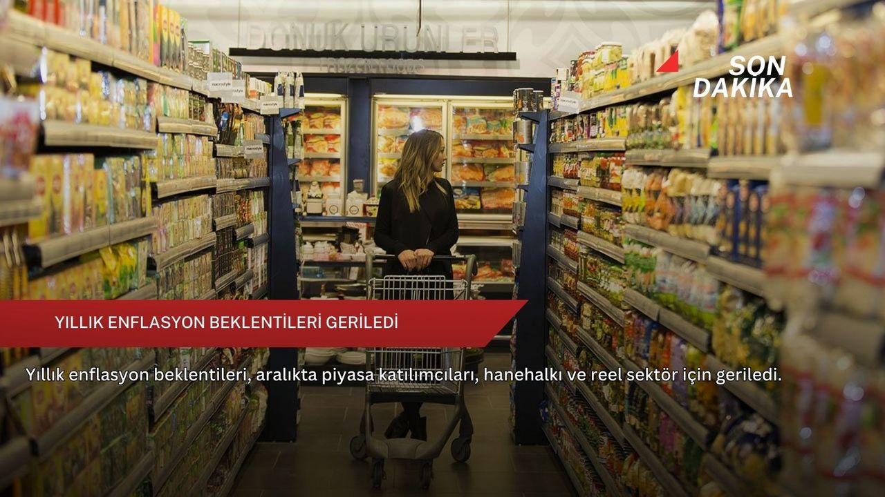 Buna göre, 2025 yılı aralık ayında 12 ay sonrası yıllık enflasyon beklentileri geçen aya göre, piyasa katılımcıları için 0,14 puan azalarak yüzde 23,35'e, reel sektör için 0,90 puan azalışla yüzde 34,80'e, hanehalkı için 1,34 puan düşerek yüzde 50,90'a geriledi.