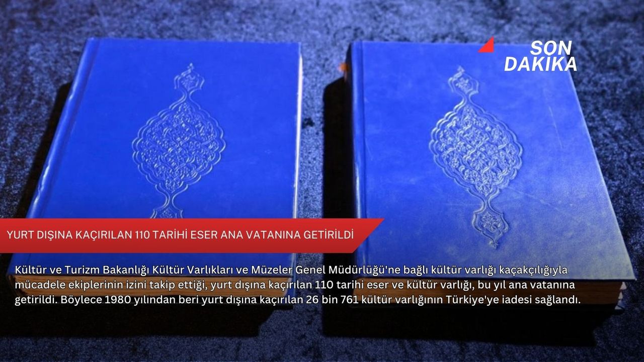 Kültür Varlıkları ve Müzeler Genel Müdürlüğü'nün 'Yurt Dışından İadesi Sağlanan Eserler' verilerine göre; 45 yılda yurt dışına kaçırılan 26 bin 761 tarihi eser ve kültür varlığı Türkiye'ye getirildi.