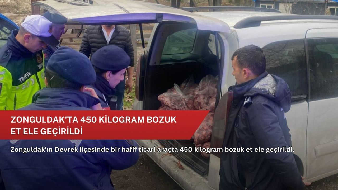 Denetimde il dışından geldiği tespit edilen bir ticari araçta 450 klogram bozulmuş et ele geçirildi.